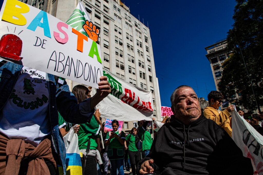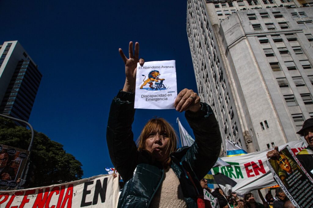 Este miércoles 22 el amplio sector de la discapacidad, profesionales, familiares, amigos y perjudicados directos, marcharon de manera masiva reclamando la aplicación por parte del Gobierno Nacional de la ley de emergencia ya sancionada. Una vez más, el Gobiernoo de Javier Milei y sus gobernadores y legisladores aliados, desconocieron la Constitución Nacional y continuaron la sustracción de fondos de los más vulnerables, para llenarse sus propios bolsillos. Cobertura fotográfica en exclusiva de nuestro cronista gráfico Matías Rosingana.
