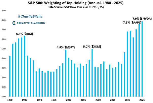 Las acciones de las Siete Magnificas (NIVIDI, Microsoft, Alphabet (Google), Apple, Meta, Tesla y Amazon) representan ya alrededor del 35 % del valor de las bolsas de EEUU, y el valor de mercado de NVIDIA supone alrededor del 19 % de las Siete Magníficas. El S&P 500 nunca ha estado más concentrado en un solo valor que hoy, con Nvidia aportando cerca del 8 % del índice.